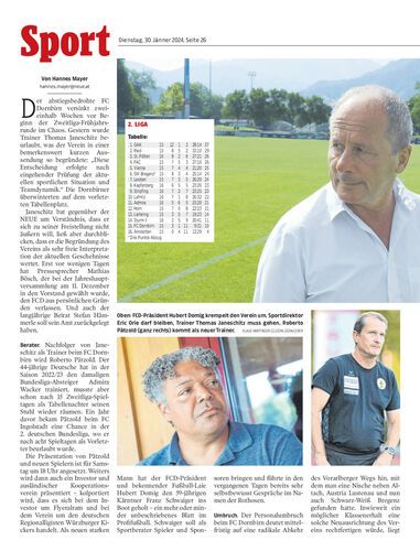 Hintergrund. Beim FC Dornbirn bleibt kein Stein auf dem anderen. Trainer Thomas Janeschitz wurde freigestellt, Nachfolger wird der Deutsche Roberto Pätzold. Zudem holt FCD-Boss Hubert Domig einen Sportberater sowie einen Investor ins Boot.