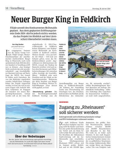 Filiale unweit des Konkurrenten McDonalds geplant. Aus dem geplanten Eröffnungstermin Ende 2024 dürfte jedoch nichts werden. da das Projekt im Hinblick auf den Lärmschutz überarbeitet werden muss.