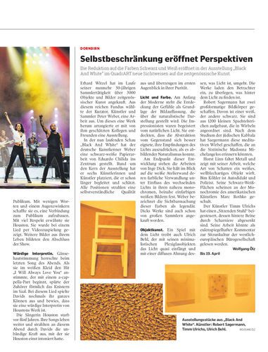 Die Reduktion auf die Farben Schwarz und Weiß eröffnet in der Ausstellung „Black And White“ im QuadrART neue Sichtweisen auf die zeitgenössische Kunst.