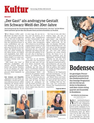 Am Freitag bringt die Theatergruppe Wolfurt Patrizia Barbuianis „Der Gast“ auf die Bühne. Heidi Salmhofer spricht über das absurde Stück und deren Parallelen zur Realität.