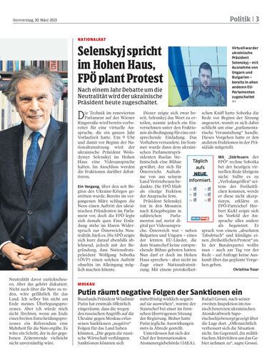 Nach einem Jahr Debatte um die Neutralität wird der ukrainische Präsident heute zugeschaltet.