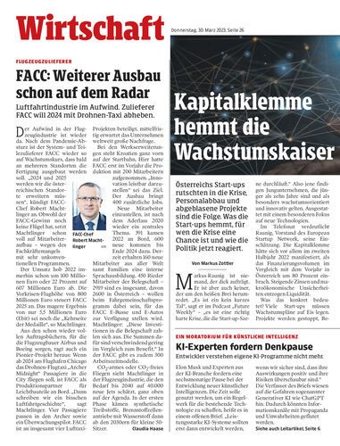 Luftfahrtindustrie im Aufwind. Zulieferer FACC will 2024 mit Drohnen-Taxi abheben.