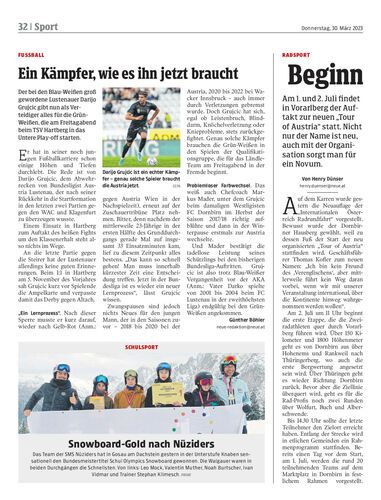 Der bei den Blau-Weißen groß gewordene Lustenauer Darijo Grujcic gibt nun als Verteidiger alles für die Grün-Weißen, die am Freitagabend beim TSV Hartberg in das Untere Play-off starten.