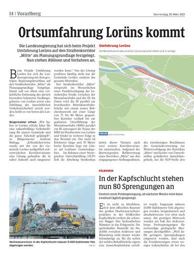 Die Landesregierung hat sich beim Projekt Umfahrung Lorüns auf den Straßenkorridor „Mitte“ als Planungsgrundlage festgelegt. Nun stehen Ablösen und Verfahren an.