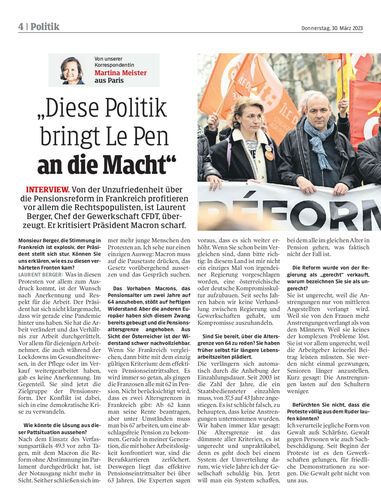 Von der Unzufriedenheit über die Pensionsreform in Frankreich profitieren vor allem die Rechtspopulisten, ist Laurent Berger, Chef der Gewerkschaft CFDT, überzeugt. Er kritisiert Präsident Macron scharf.