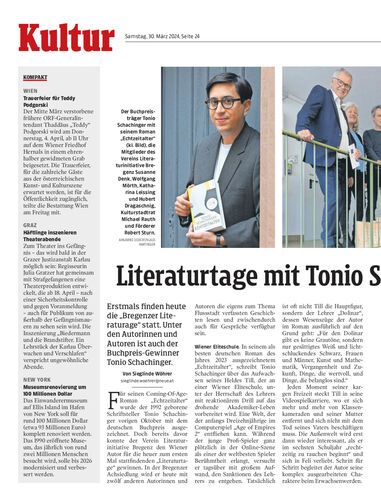 Erstmals finden heute die „Bregenzer Literaturage“ statt. Unter den Autorinnen und Autoren ist auch der Buchpreis-Gewinner Tonio Schachinger.