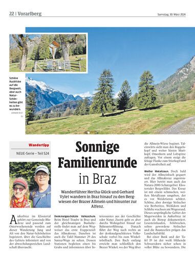 Wanderführer Hertha Glück und Gerhard Vylet wandern in Braz hinauf zu den Bergwiesen der Brazer Allmein und hinunter zur Alfenz.