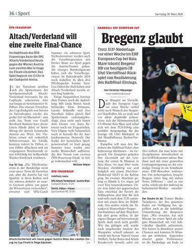 Trotz 31:37-Niederlage vor einer Woche im EHF European Cup bei Baia Mare träumt Bregenz HB vor heutigem (18 Uhr) Viertelfinal-Rückspiel von Realisierung des Halbfinal-Einzugs.