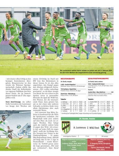 Die Lustenauer Austria hat heute (Spielbeginn 17 Uhr) die Wattener Sportgemeinschaft Tirol zu Gast. Das direkte Duell der beiden Kellerkinder sorgt für viel Brisanz in der Qualifikationsgruppe.