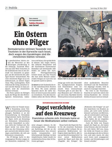 Zahlreiche Gläubige haben gestern die Karfreitagsprozession durch die Jerusalemer Altstadt begangen.