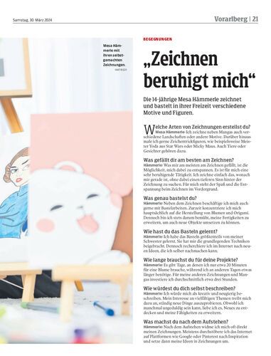Die 14-jährige Mesa Hämmerle zeichnet und bastelt in ihrer Freizeit verschiedene Motive und Figuren.