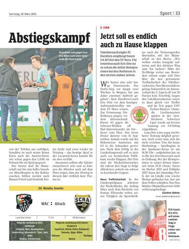 Tabellennachzügler FC Dornbirn empfängt heute (14.30 Uhr) den SV Horn. Für Interimscoach Eric Orie ist es schon die dritte Heimpremiere bei den Rothosen in den letzten sieben Jahren.