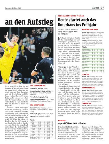 Eliteliga startet heute mit Derby Höchst gegen Hard ins Frühjahr.