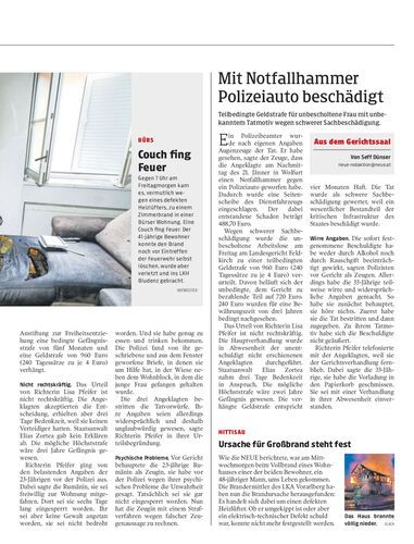 Teilbedingte Geldstrafe für unbescholtene Frau mit unbekanntem Tatmotiv wegen schwerer Sachbeschädigung.