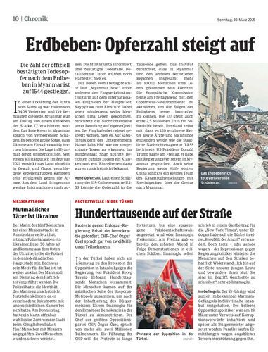 Die Zahl der offiziell bestätigten Todesopfer nach dem Erdbeben in Myanmar ist auf 1644 gestiegen.
