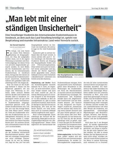 Eine Vorarlberger Studentin des Internationalen Studentenhauses in Innsbruck, an dem auch das Land Vorarlberg beteiligt ist, spricht von Bespitzelung und maroder Infrastruktur. Land weist Vorwürfe zurück.