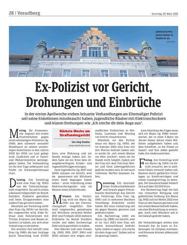 In der ersten Aprilwoche stehen brisante Verhandlungen an: Ehemaliger Polizist soll seine Enkelinnen missbraucht haben, jugendliche Räuber mit Elektroschockern und klaren Drohungen wie „Ich steche dir dein Auge aus“.