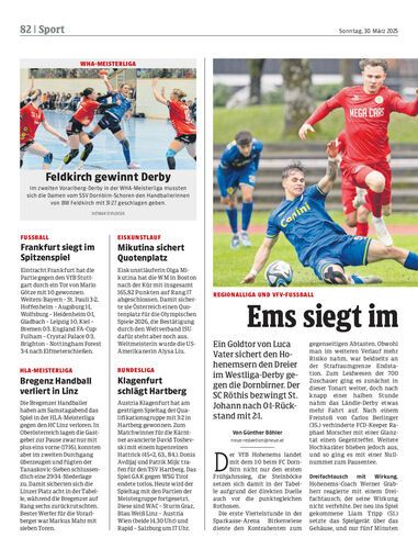 Ein Goldtor von Luca Vater sichert den Hohenemsern den Dreier im Westliga-Derby gegen die Dornbirner. Der SC Röthis bezwingt St. Johann nach 0:1-Rückstand mit 2:1.