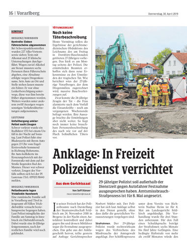 29-jähriger Polizist soll außerhalb der Dienstzeit gegen Autofahrer Festnahme ausgesprochen haben. Amtsmissbrauch-Strafprozess ist für 8. Mai angesetzt.