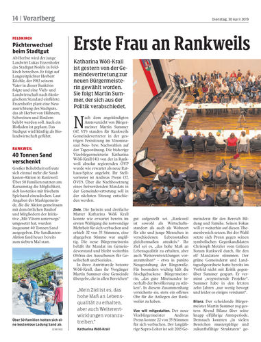 Katharina Wöß-Krall ist gestern von der Gemeindevertretung zur neuen Bürgermeisterin gewählt worden. Sie folgt Martin Summer, der sich aus der Politik verabschiedet.