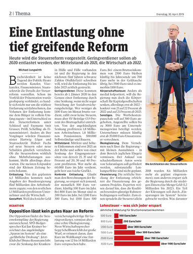 Heute wird die Steuerreform vorgestellt. Geringverdiener sollen ab 2020 entlastet werden, der Mittelstand ab 2021, die Wirtschaft ab 2022.