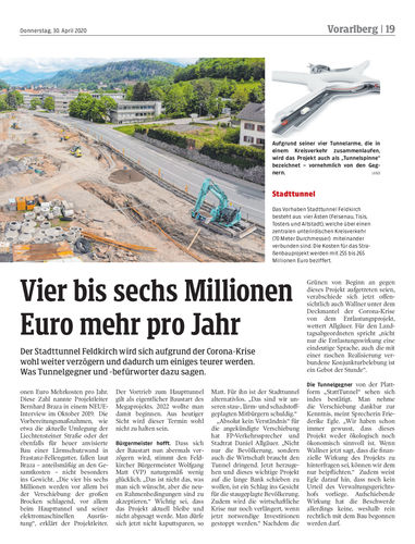 Der Stadttunnel Feldkirch wird sich aufgrund der Corona-Krise wohl weiter verzögern und dadurch um einiges teurer werden. Was Tunnelgegner und -befürworter dazu sagen.