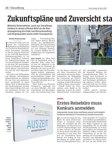 Mehrere Unternehmer, auch aus Vorarlberg, fordern in einem offenen Brief an die Bundesregierung ein Ende von Bevormundung und Angstparolen sowie mehr Transparenz.