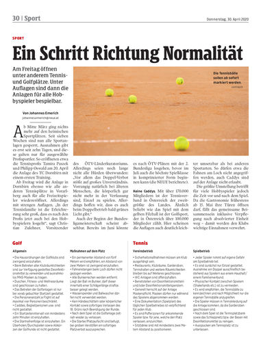 Am Freitag öffnen unter anderem Tennis- und Golfplätze. Unter Auflagen sind dann die Anlagen für alle Hobbyspieler bespielbar.