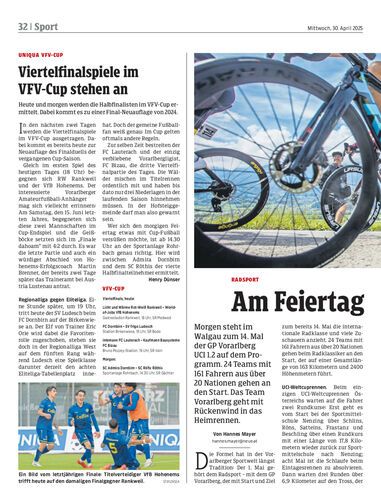 Heute und morgen werden die Halbfinalisten im VFV-Cup ermittelt. Dabei kommt es zu einer Final-Neuauflage von 2024.