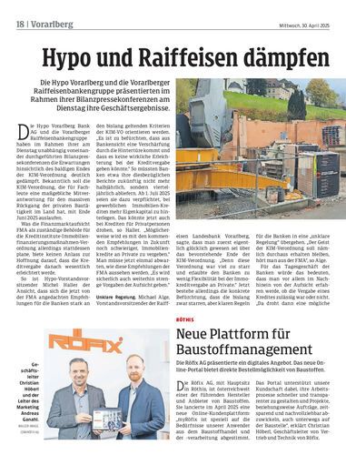 Die Hypo Vorarlberg und die Vorarlberger Raiffeisenbankengruppe präsentierten im Rahmen ihrer Bilanzpressekonferenzen am Dienstag ihre Geschäftsergebnisse.