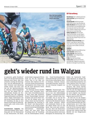 Morgen steht im Walgau zum 14. Mal der GP Vorarlberg UCI 1.2 auf dem Programm. 24 Teams mit 161 Fahrern aus über 20 Nationen gehen an den Start. Das Team Vorarlberg geht mit Rückenwind in das Heimrennen.