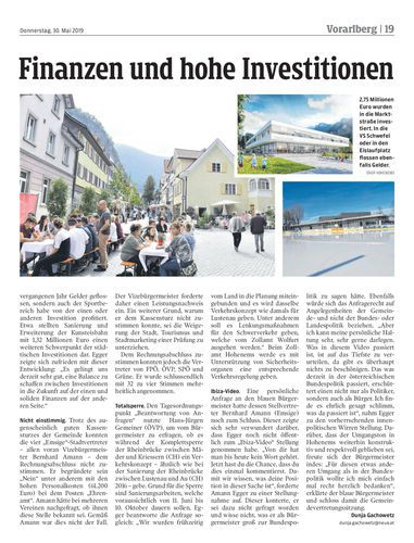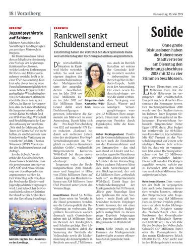 Ohne große Diskussionen haben die Hohenemser Stadtvertreter am Dienstag den Rechnungsabschluss 2018 mit 32 zu vier Stimmen beschlossen.