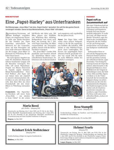 Die Bikergruppe „Jesus Biker“ hat eine „Papst-Harley“ gestaltet. Sie soll für den guten Zweck versteigert werden. Davor ist das Motorrad beim „Peace-Ride“ mit dabei.
