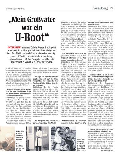 Interview. In Anna Goldenbergs Buch geht sie ihrer Familiengeschichte, die sich in der Zeit des Nationalsozialismus in Wien zuträgt, nach. Kürzlich stattete sie Vorarlberg