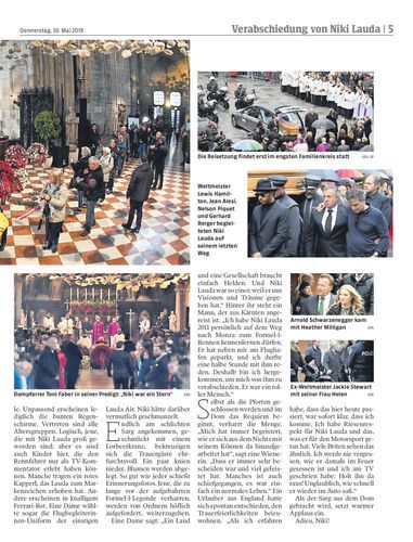 AM SCHAUPLATZ. Niki Lauda, der wohl berühmteste Österreicher, wurde im Stephansdom verabschiedet und in Wien beigesetzt. Tausende Menschen gedachten der Legende und begleiteten sie auf ihrem letzten Weg. Von Harald Schume