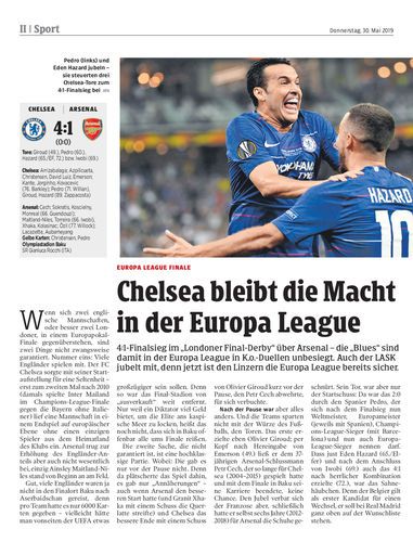 4:1-Finalsieg im „Londoner Final-Derby“ über Arsenal – die „Blues“ sind damit in der Europa League in K.o.-Duellen unbesiegt. Auch der LASK jubelt mit, denn jetzt ist den Linzern die Europa League bereits sicher.