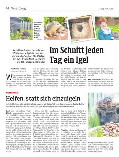 Anneliese Dalpez betreibt seit 37 Jahren die Igelstation Nüziders und pflegt an die 400 Igel im Jahr. Einen Nachfolger hat die 80-Jährige noch nicht.