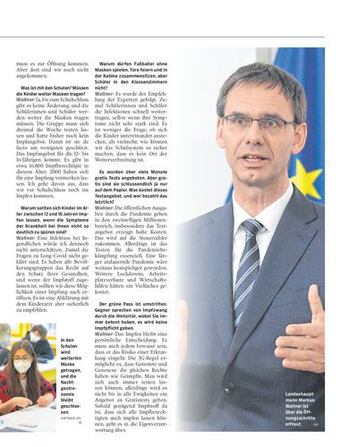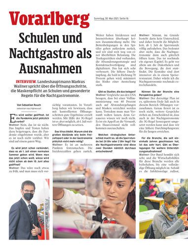 Interview. Landeshauptmann Markus Wallner spricht über die Öffnungsschritte, die Maskenpflicht an Schulen und gesonderte Regeln für die Nachtgastronomie.