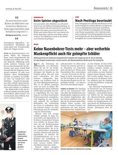 Bildungsminister Faßmann begrüßt die Freigabe der Impfung für 12- bis 15-Jährige. An den Regeln ändert das vorerst nichts, die Maskenpflicht bleibt auch für Geimpfte.