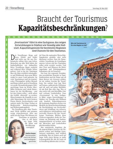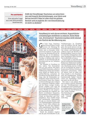 Stößt der Vorarlberger Tourismus an seine Grenzen und braucht Beschränkungen, was Gäste und Betten betrifft? Oder ist alles noch im grünen Bereich und an jegliche Art von Einschränkung ist nicht zu denken?