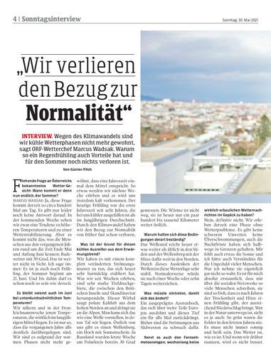 Interview. Wegen des Klimawandels sind wir kühle Wetterphasen nicht mehr gewohnt, sagt ORF-Wetterchef Marcus Wadsak. Warum so ein Regenfrühling auch Vorteile hat und für den Sommer noch nichts verloren ist. Von Günter Pilch