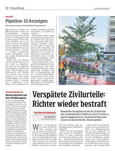 Neuerliche Disziplinarstrafe für Zivilrichter des Landesgerichts Feldkirch, der 16 Urteile zu spät fertiggestellt hat: Rechtskräftige Geldstrafe von einem Brutto-Monatsgehalt.