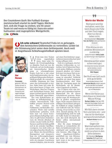 Ich sehe schwarz! Teamchef Foda ist es gelungen, den heimischen Größenwahn zu vertreiben. Leider ist die Stimmung jetzt unter dem Gefrierpunkt. Auch weil er Angsthasen-Schlafwagenfußball spielen lässt.
