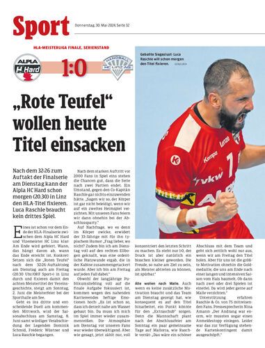 Nach dem 32:26 zum Auftakt der Finalserie am Dienstag kann der Alpla HC Hard schon morgen (20.30) in Linz den HLA-Titel fixieren. Luca Raschle braucht kein drittes Spiel.