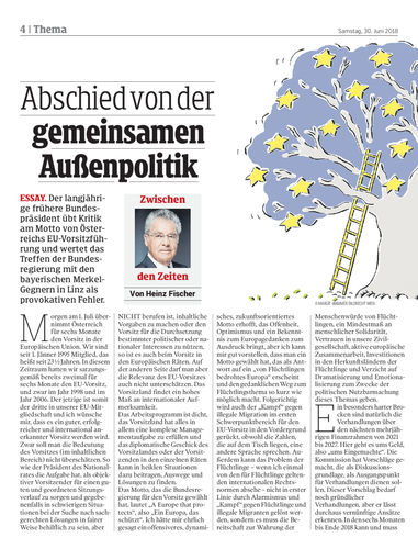 ESSAY. Der langjährige frühere Bundespräsident übt Kritik am Motto von Österreichs EU-Vorsitzführung und wertet das Treffen der Bundesregierung mit den bayerischen Merkel-Gegnern in Linz als provokativen Fehler.