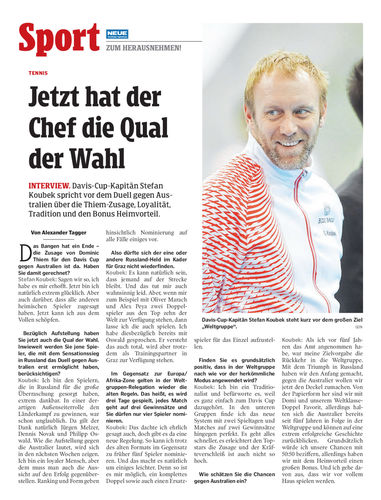 Interview. Davis-Cup-Kapitän Stefan Koubek spricht vor dem Duell gegen Australien über die Thiem-Zusage, Loyalität, Tradition und den Bonus Heimvorteil.