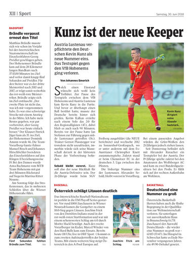 Austria Lustenau verpflichtete den Deutschen Kevin Kunz als neue Nummer eins. Das Testspiel gegen den VfB Hohenems ging verloren.