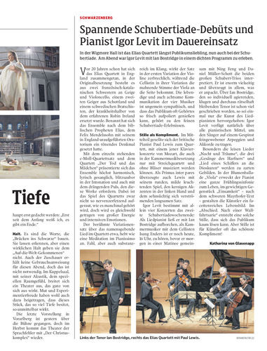 In der Wigmore Hall ist das Elias Quartett längst Publikumsliebling, nun auch bei der Schubertiade. Am Abend war Igor Levit mit Ian Bostridge in einem dichten Programm zu erleben.