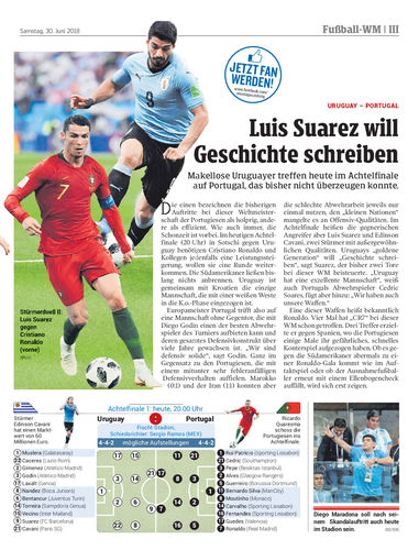 Makellose Uruguayer treffen heute im Achtelfinale auf Portugal, das bisher nicht überzeugen konnte.
