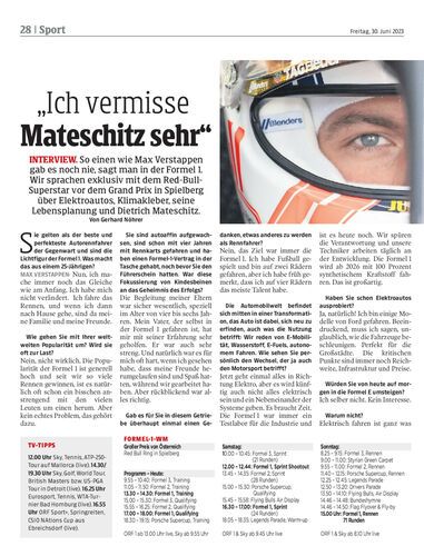So einen wie Max Verstappen gab es noch nie, sagt man in der Formel 1. Wir sprachen exklusiv mit dem Red-Bull- Superstar vor dem Grand Prix in Spielberg über Elektroautos, Klimakleber, seine Lebensplanung und Dietrich Mateschitz. Von Gerhard Nöhrer